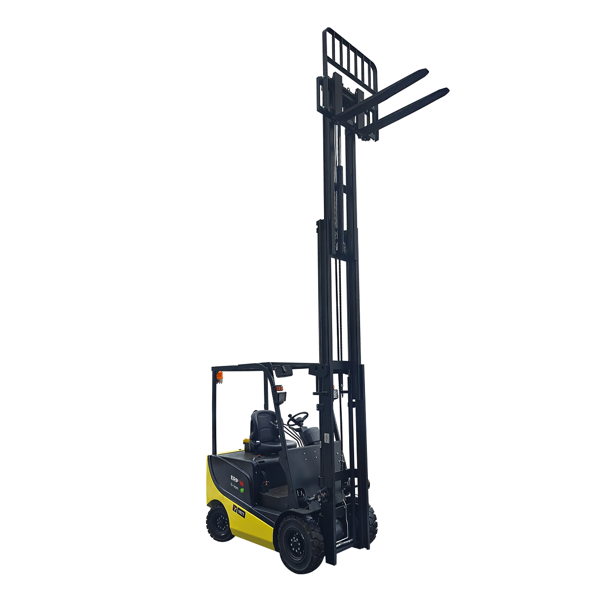 YETT ERP18 li-ion ZSM480-SS — надежная, функциональная и простая в использовании модель. Востребован на складах, объектах торговли, в распределительных центрах. Грузоподъемность составляет 1800 кг, подъем вил возможен на высоту до 4.8 м. Оборудован необслуживаемыми электродвигателями мощностью 7700 Вт (на подъем) и 7500 Вт (на передвижение).